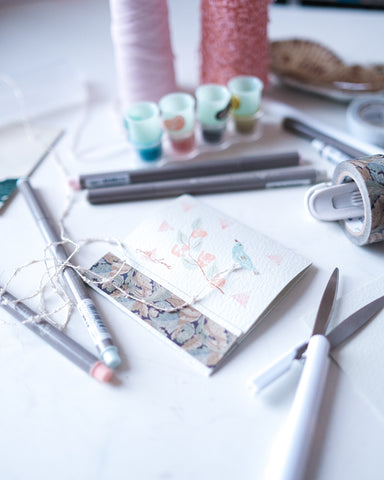 - Use a couple of brush pens to create some soft floral motif designs to complement the Morris & co washi.